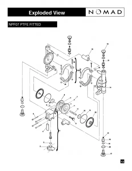 The PWR-FLO asymmetrical spool design (ASD) features the most efficient air system available. The anti-stalling design also provides excellent reliability in on/off liquid transfer for filling and batching applications. The air valve and center section is made of chemically resistant polypropylene. Similar and Comparable to Wilden® Standard P Series "Pro-Flo® Valve Design". Model: NPF07/PPPP/TF//TF/PTV/N/C Porting Position: Center Ported