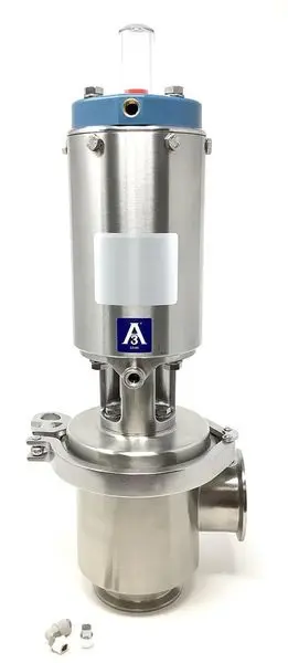 • Type 48 Valve Body with a 2 Port, Tank Outlet Tee Offset to the Left and Tri-Clamp® Style Connections